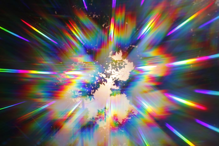 [3] 빌라 알레곤다(Villa Allegonda)를 위해 테오 판 두스부르흐(Theo van Doesburg)가 설계한 <스테인드글라스 구성 II(Stained-Glass Composition II)> (1917) 와 <스테인드글라스 구성 V(Stained-Glass Composition V)>(1917-1918)에서는 이미 디자인 단계에서 회절한 빛의 투영을 계획했으며, 수직 형태 내에서 비구상적으로 분포된 원색 및 보색 등 무지개색 유닛을 구조화하였다. 2007년 한국 안양에서 선보인 다니엘 뷔렌(Daniel Buren)의 <오색찬란한 하늘 아래 산책길(Passages Under a Colored Sky)> 역시 유사한 방식으로 작동한다. 이 작품에서는 색유리를 사용한 퍼걸러(pergola) 구조물이 지면에 형형색색의 그림자를 드리운다.
