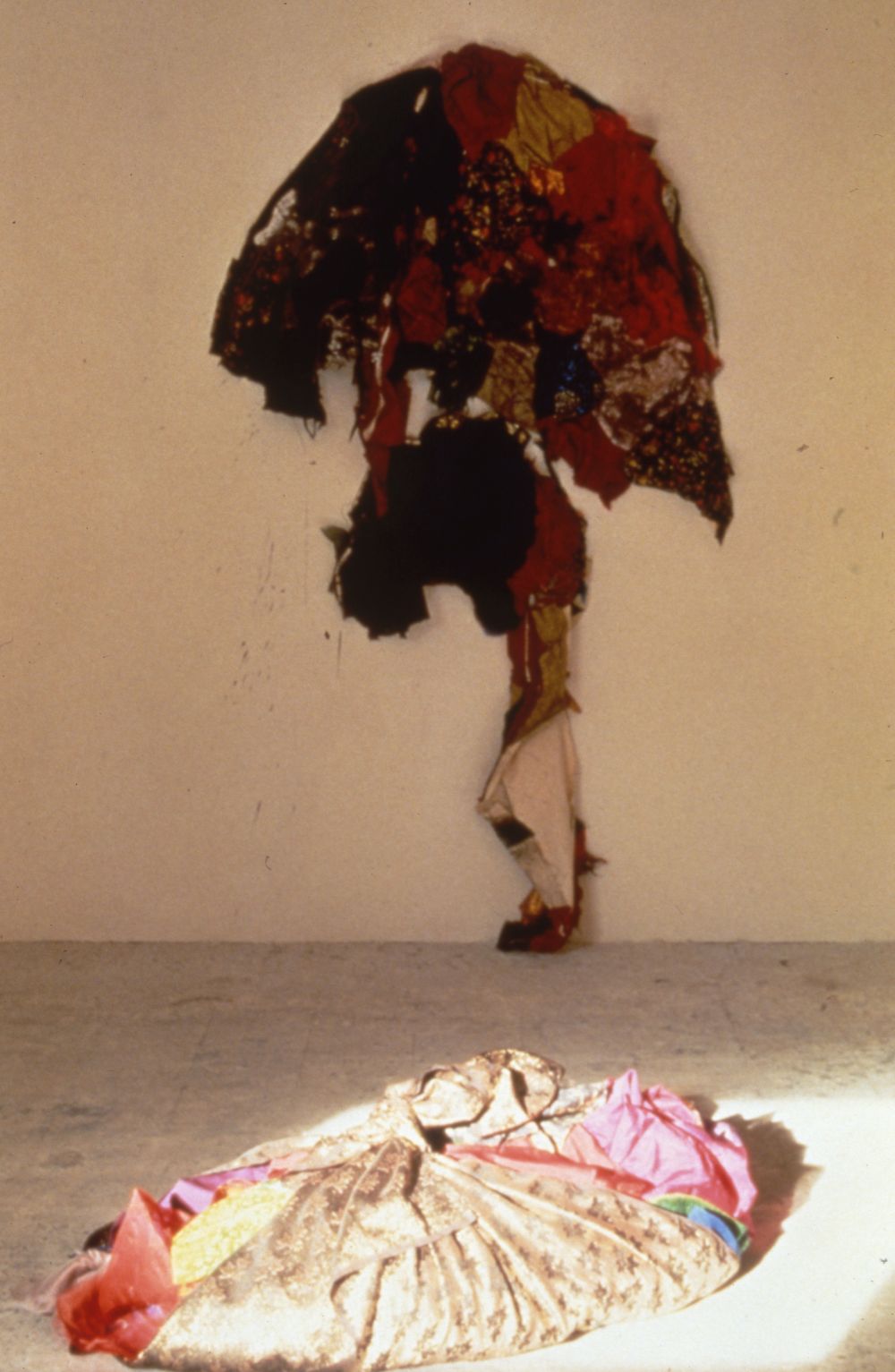 〈세계와 마음〉은 김수자의 초기 바느질 작업(1983–1992) 가운데 하나로, 회화 교육을 받은 작가가 텍스타일을 통해 회화의 대안적 방식을 모색하던 시기의 중요한 실험을 보여준다. 세로와 가로의 직조 구조를 가진 텍스타일은 작가에게 회화적 표면을 탐구하는 매체이자, 전통적으로 한국 여성이 담당하던 노동의 리듬과 일상을 은유하는 재료였다. 벽면에 설치된 〈세계와 마음〉은 작가가 수집한 헌 천조각을 이어 붙인 것으로 타원 형태를 이루고 있다. 작가는 붓 대신 바늘과 실을 사용함으로써 이차원적 표면의 환영을 해체하고, 캔버스로부터 자신을 해방시키고자 했다. 후 한루와의 2016년 인터뷰에서 그녀가 밝힌 바와 같이, 바느질은 그녀에게 우주의 에너지가 전신을 관통하는 전율의 순간을 의미한다. 반복되는 바느질 행위는 치유의 과정이자 포용의 제스처가 되며, 가로 세로로 꿰매어진 천 조각은 서로 다른 시간, 기억, 그리고 한때 그 천을 입었던 이들의 흔적을 하나로 결합한다. 〈세계와 마음〉에서 김수자는 세계의 토대를 이루는 수직성과 수평성의 관계를 더듬어간다.