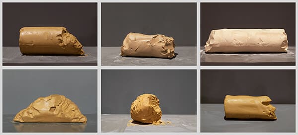 Kimsooja presented her first clay ball at MAC Lyon when she was requested to make a vessel for water in response to Yoko Ono’s work We Are All Water (2006). The artist intentionally sent a ball of clay in a partially dried state as a container of water.