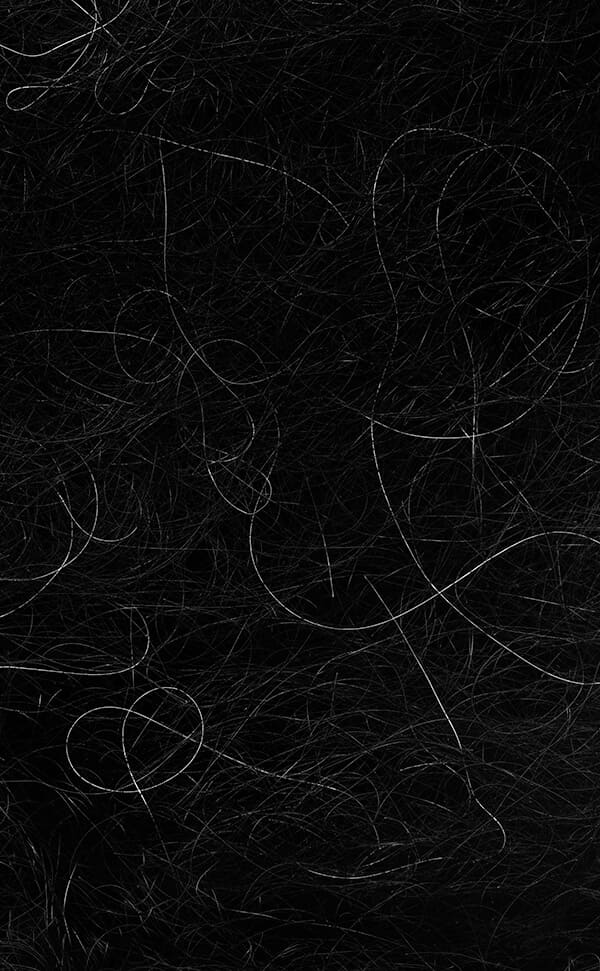 수년간 작가는 자신의 몸에서 빠져나온 머리카락을 수집해왔다. 거의 보이지 않을 정도로 미세한 이 머리카락들은 공간 속에서 실오라기처럼 존재하며, 무한히 겹쳐진 선묘와 같은 형상을 하고 있다. 하나의 머리카락은 탄생과 함께 시작된 시간의 길이를 품고 있으며, 우리 모두가 속한 연속성의 구조를 반영한다. 그것은 몸의 형태를 만들고, 서로의 존재를 이어주는 시간의 기하학을 형상화한다.