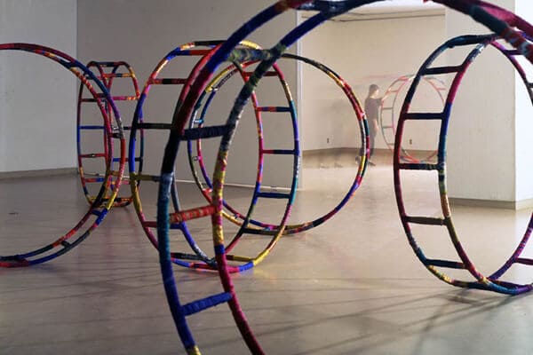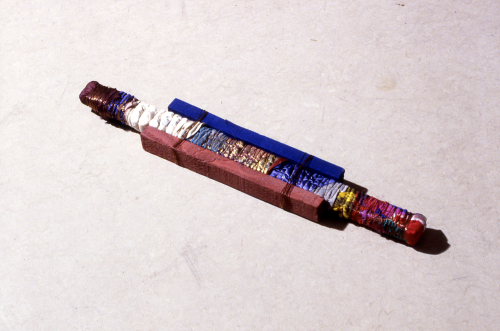 Thread, Chinese Ink and Acrylic on Cloth, Bamboo Pole