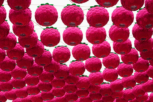 Site-specific Installation Consisting of 656 Lotus Lanterns, Tibetan, Gregorian, and Islamic Chants, Steel Structure and Cables