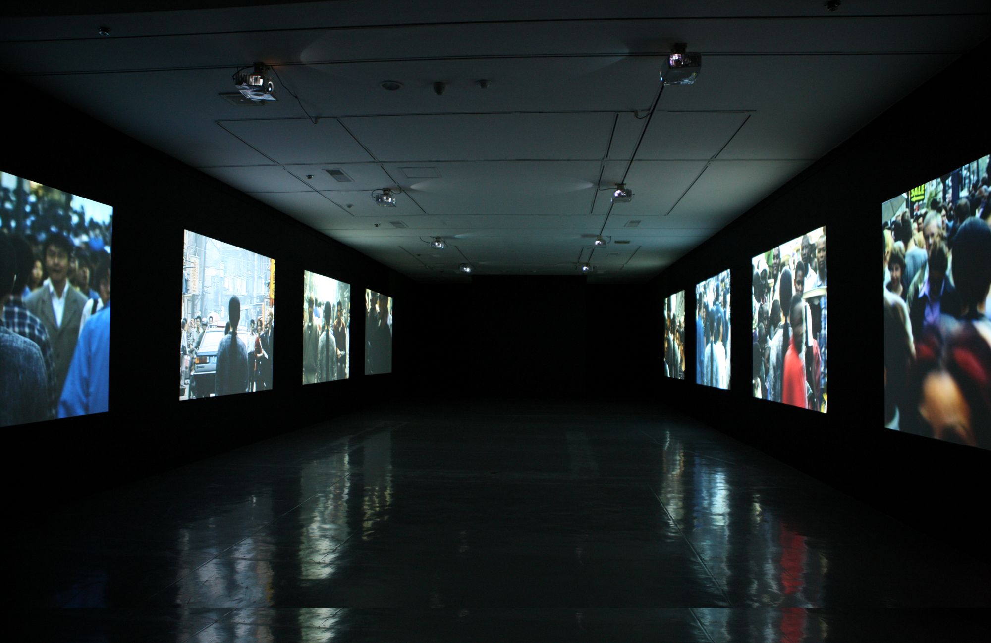 A Needle Woman - Tokyo, Shanghai, Delhi, New York, Mexico City, Cairo, Lagos, London, 1999-2001, 8 Channel Video, 6:33 loop, Silent