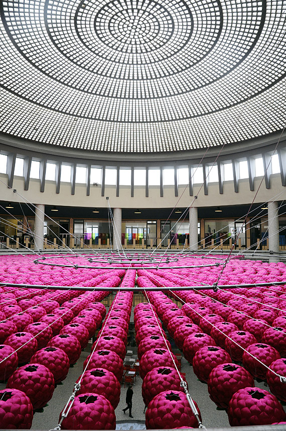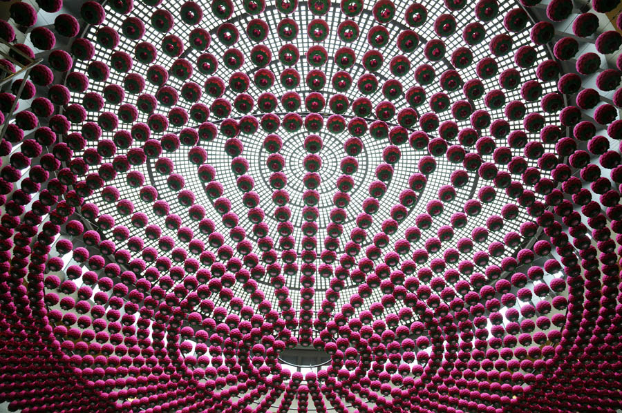 Lotus: Zone of Zero, 2008, Approx. 2000 lotus lanterns, Tibetan, Gregorian, and Islamic chants, Steel structure and cables.