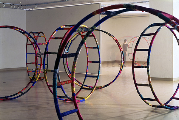 01 Towards the Flower, 1992, Used Cloth, Thread, Wooden Pole, Used Bedcover, Bottari, 357 x 348 x 355 cm