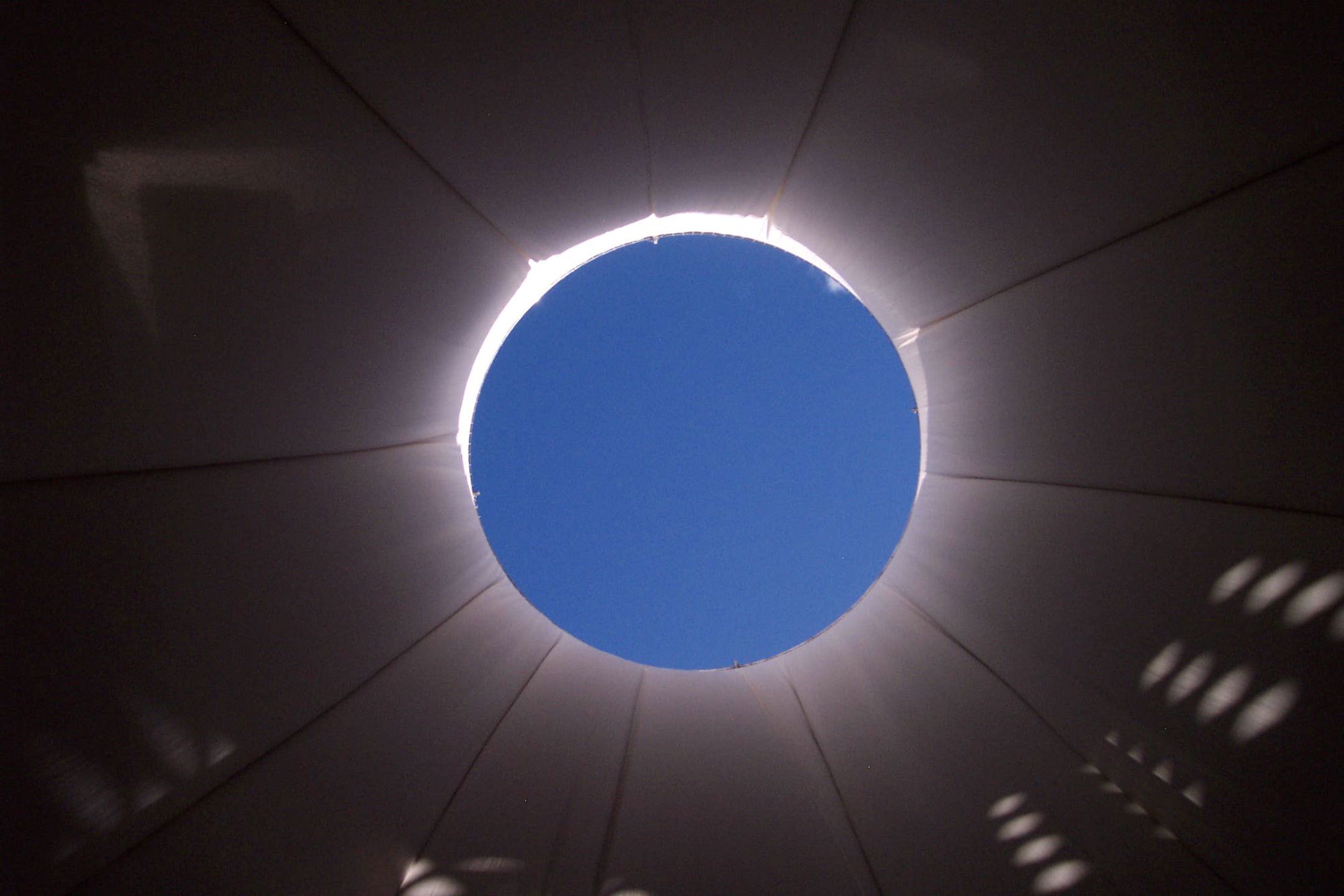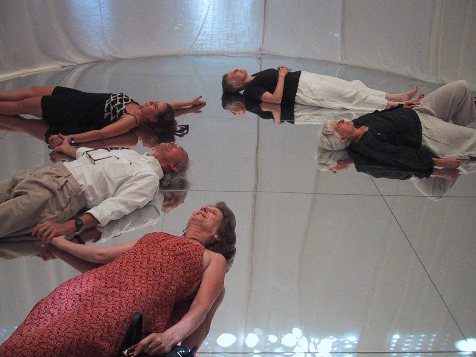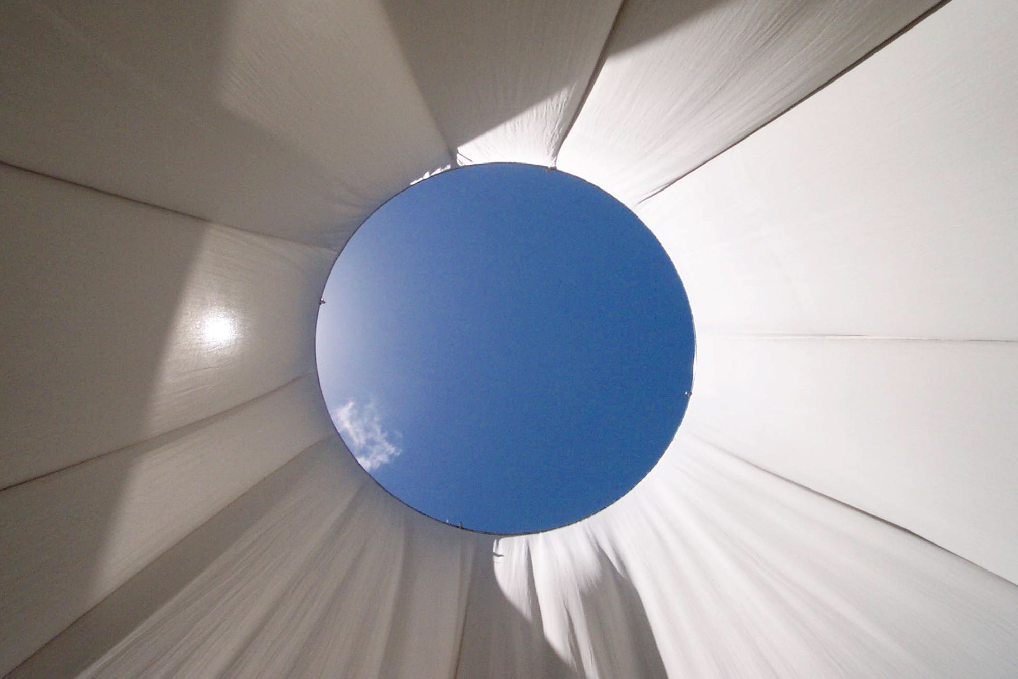A Mirror Woman: The Ground of Nowhere, 2003, Aluminum Ring, Fine Gauze Cotton, Mirror, Wood, Ring: 57x 21' diameter