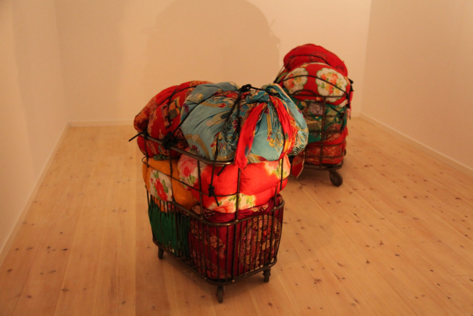 02 Deductive Objects – Bottari Cart, 2007, 19th C. Baguette Cart from France, Bottaris, Bungee Cords, 100 x 97 x 73 cm,106 x 100 x 63 cm