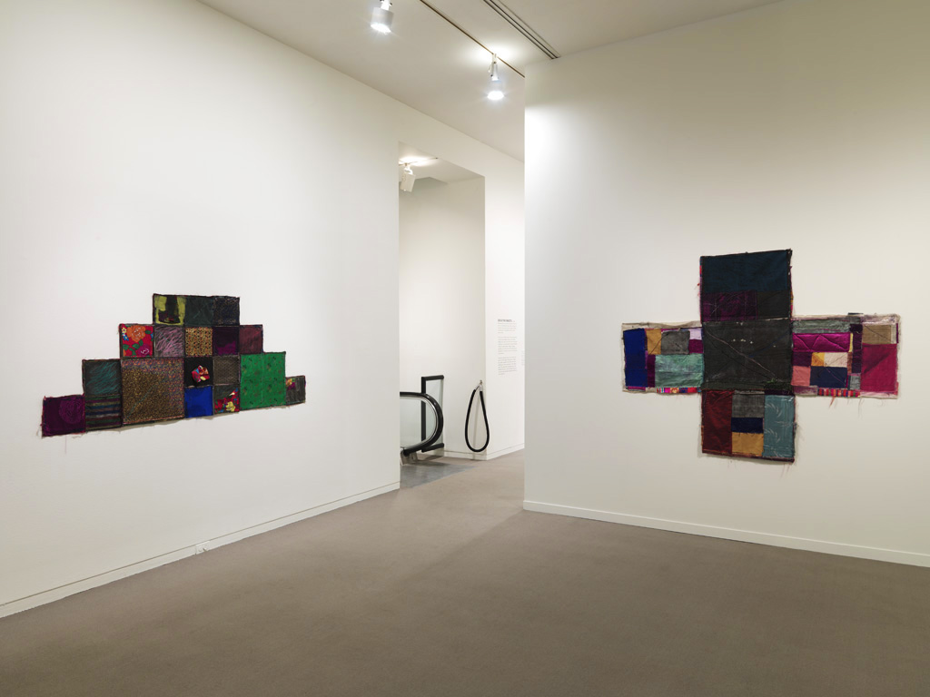 03 [Left] Untitled, 1987, Used Korean Clothing Fragments, Chinese Ink, Thread, 87 x 210 cm