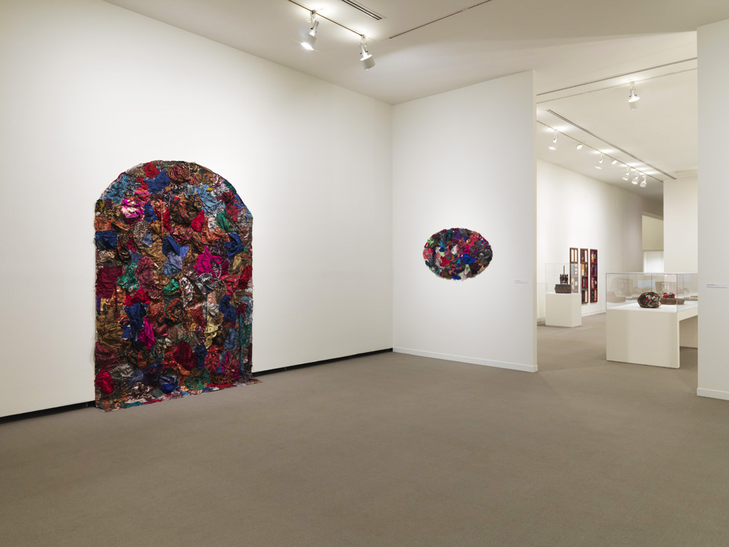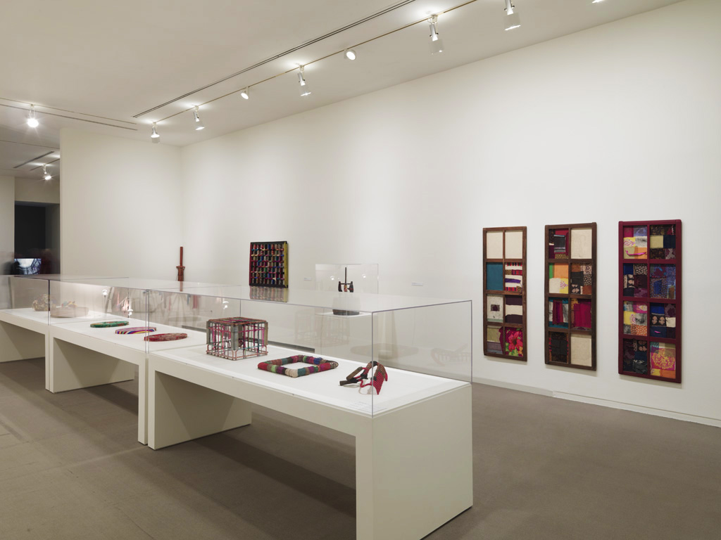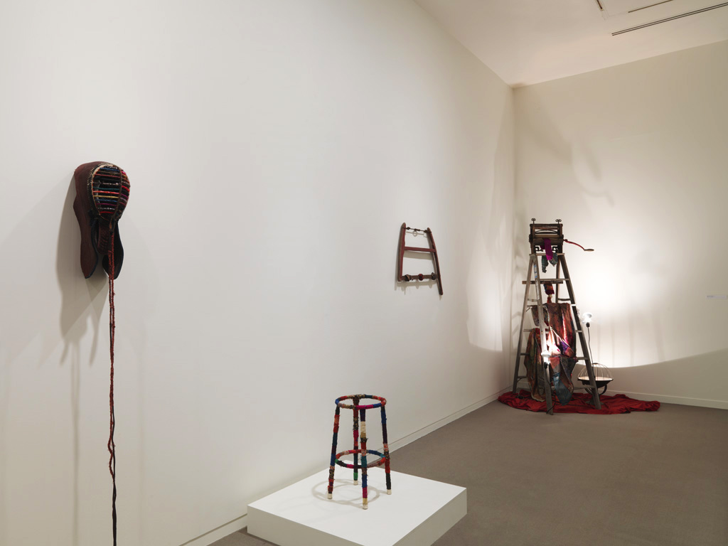 [Center] Deductive Object, 1991, Used Korean Clothing Fragments and thread on Korean Stool, 55.5 x 30 x 30 cm / Deductive Object, 1992, Cloth on Found Object, 68.5 x 87 x 4.5cm