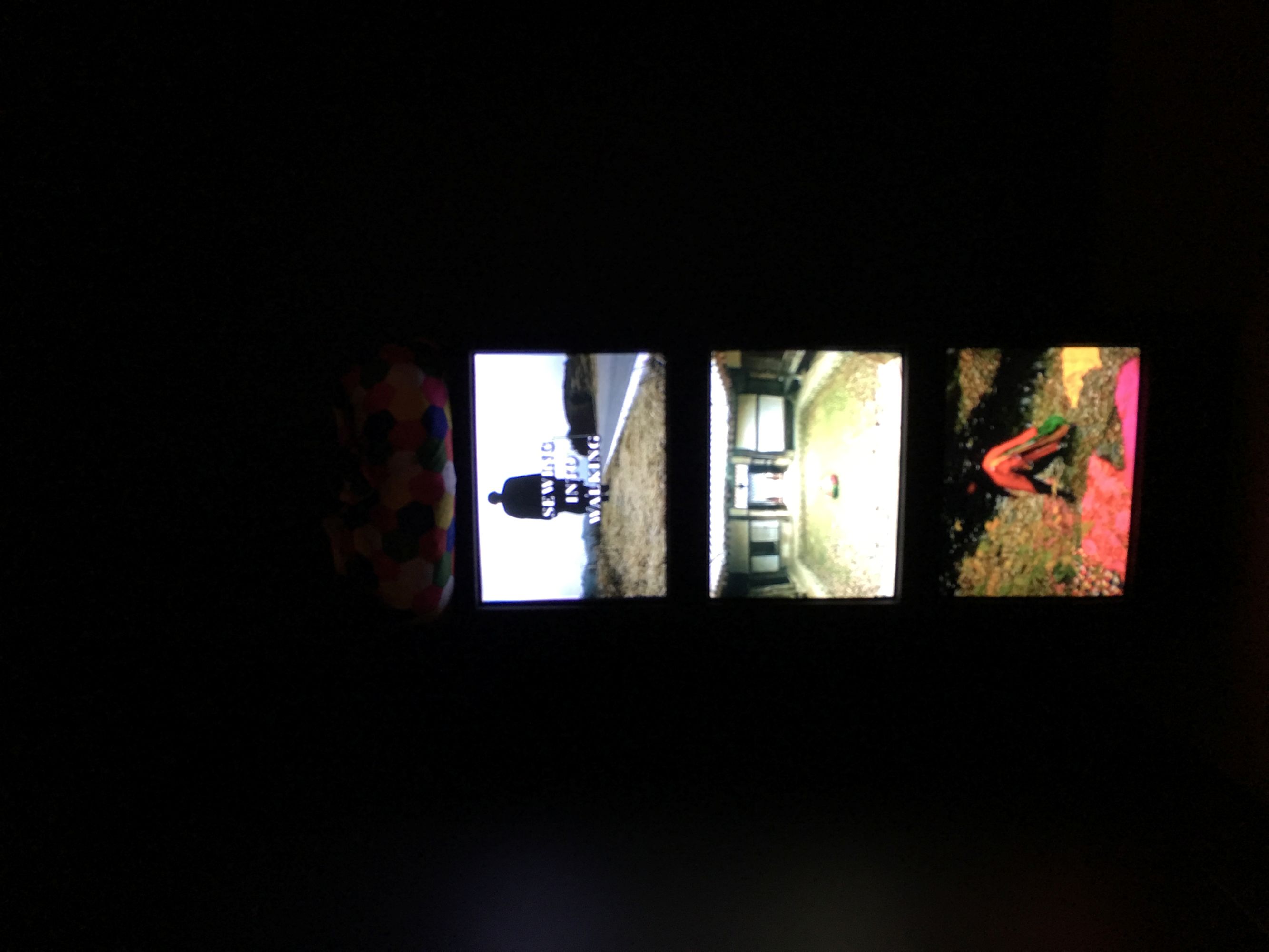 02 – 03 Sewing Into Walking, 1994, Fabric and Performance Video Installation, Fabric + Three Channel (Kyungju: 19:40, Yangdong Village: 2:41, Mai Mountain: 1:43), Silent
