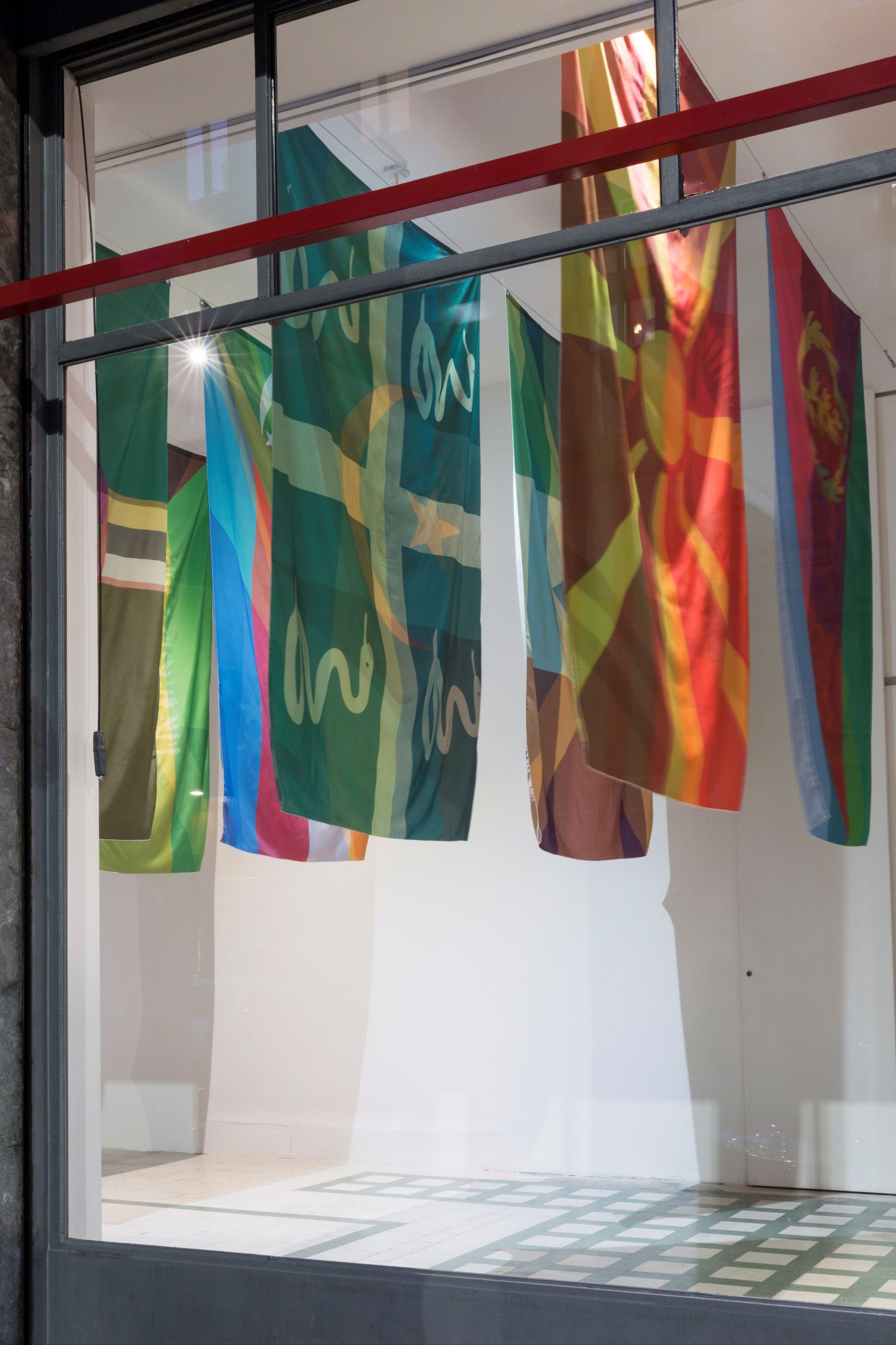 01 – 03 To Breathe – The Flags, 2018, 15 Polyester Flags, each 200 x 137 cm