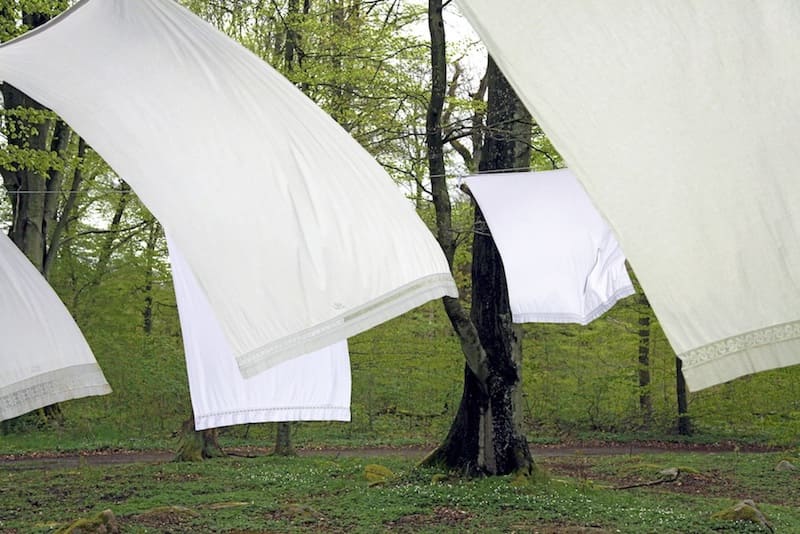 While most people were locking down this May, Korean artist Kimsooja was hanging out laundry, in a wood northeast of Malmö, not too far from the border between Sweden and Denmark, on the site of a medieval castle and an organic farm. Between the trees, 100 pristine white bedsheets are pinned to clotheslines and flap, like so many captured cartoon ghosts, in the wind. They give an idea of stains removed, fresh starts, new beginnings, extreme hygiene and slates wiped clean. And, with their embroidered trims (an example of local craftspersonship), of old traditions of manufacture and housework, which to a lot of us might seem anachronistic in a world of urbanised living, rapid manufacture, household convenience and washing machines. White: the mark of mourning, purity and rebirth. Or perhaps all this is to overthink what is simply evidence of an easily comprehensible, quotidian routine.