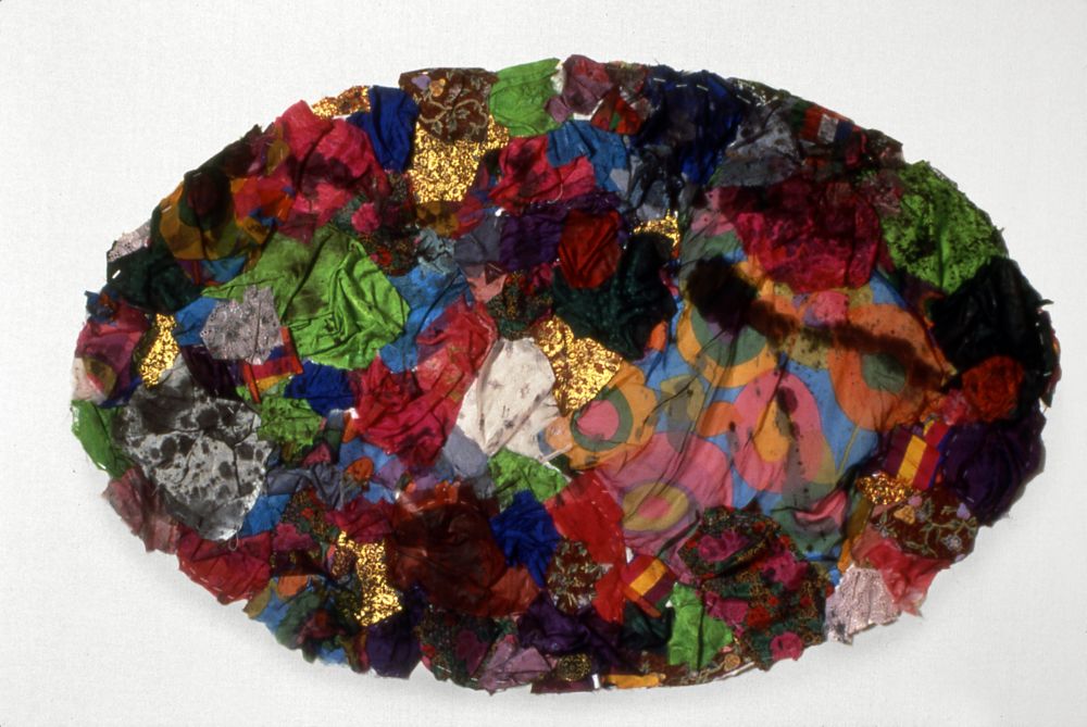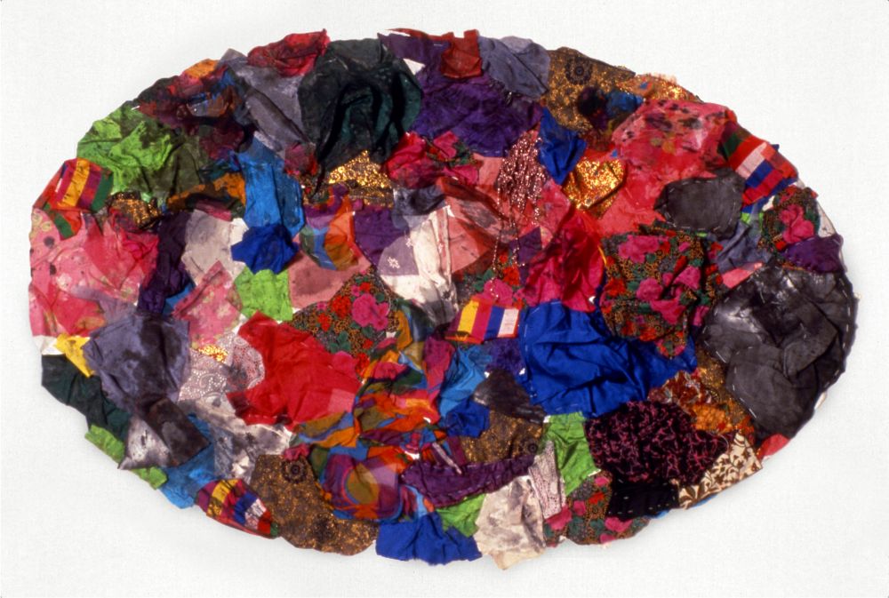 Mind of the World is one of Kimsooja's early sewn works (1983-1992), in which the trained painter first experimented with textiles to find an alternative way of painting. The textile, with its woven vertical and horizontal structure, was a medium for the artist to explore its surface as painting, as well as a metaphor for everyday life and the patterns of traditional women's labor in Korean culture. The wall piece Mind of the World consists of used textiles collected by the artist and sewn together to form an oval shape. Instead of using a brush, she used a needle and thread to break the illusion of a two-dimensional surface and free herself from the canvas. As she described in an interview with Hon Hanru (2016), sewing represents an electrifying moment for her, in which the energy of the universe permeates her entire body. Her repetitive needlework embodies a process of healing, a gesture of embrace. Sewn horizontally and vertically, the pieces of fabric combine different times, memories, and traces of the people who once wore them. In Mind of the World, Kimsooja traces the relationship between the vertical and the horizontal as foundation of the world.
