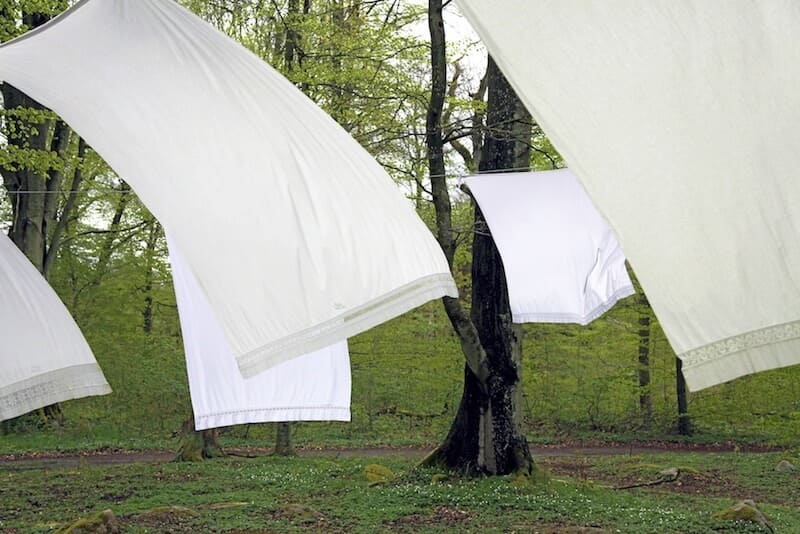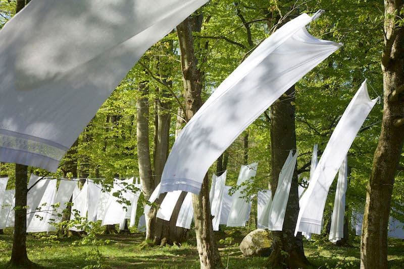A Laundry Field, Site-specific Installation Consisting of 100 Local Swedish Embroidered Bedsheets