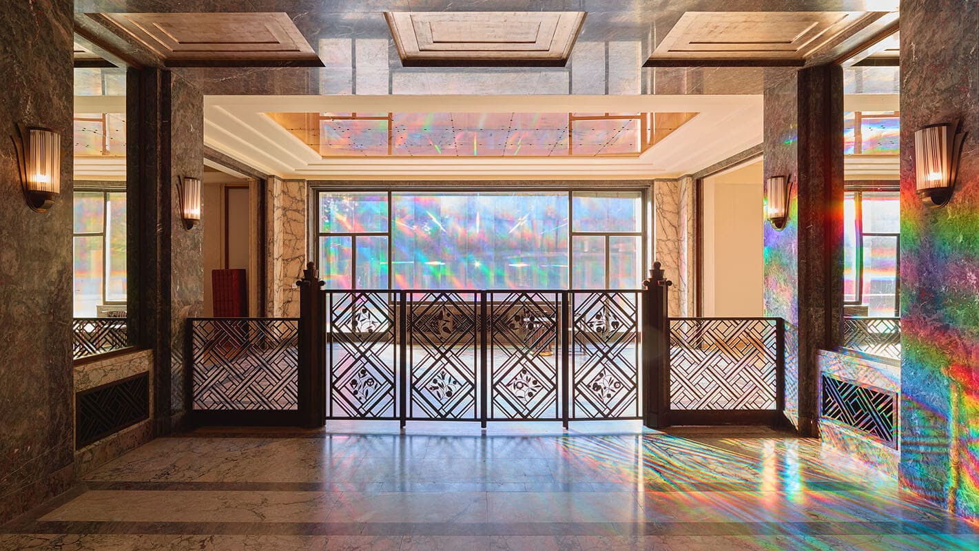 2019, site-specific installation consisting of diffraction-grating film.
