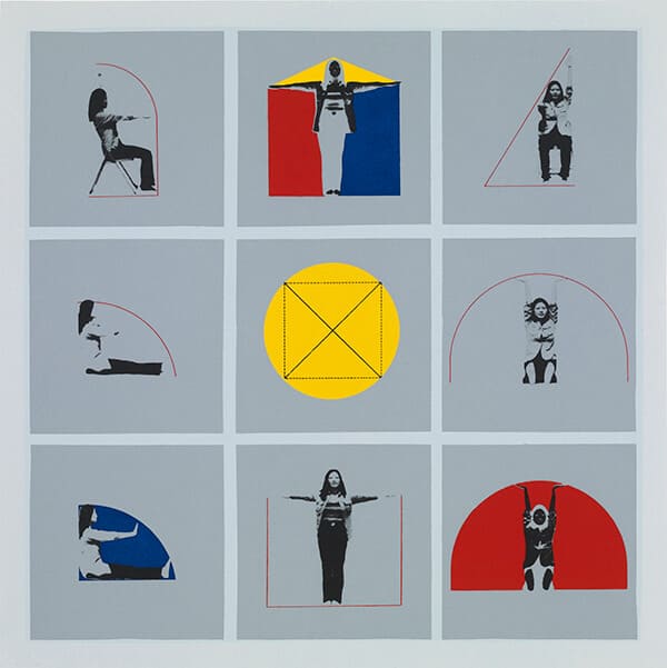 <몸의 연구>는 1980년대 초에 이루어진 신체, 평면, 공간의 역학 구조에 대한 실험으로, 작가의 퍼포먼스를 실크스크린으로 제작한 것이다. 이 작품은 작가의 역사적, 사회적, 문화적 프로젝트 <보따리>, <바늘 여인>, <보따리 트럭>, <몸의 기하학> 등에 드러난 세계의 수직 수평 구조에 개념적 기반을 두고 있다.