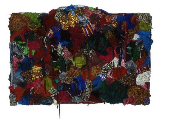 Used Clothing Fragments, Acrylics, Thread and Chinese Ink on Canvas Cloth