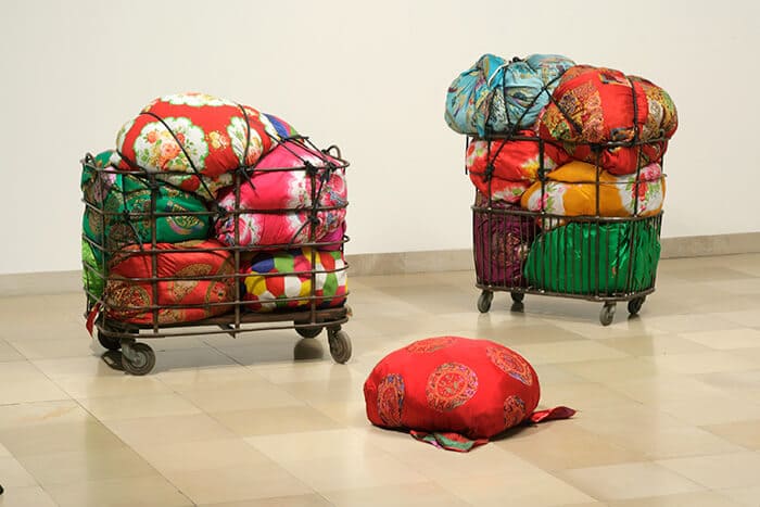[Left] Deductive Object (Bottari cart), 19th C. Baguette Cart from France, 8 Bottaris - Used Bed Clothes and Bungee Cords, 100(h) x 100(w) x 65(d)cm