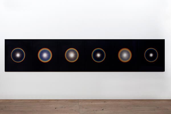 This landscape image is drawn from a video work Kimsooja filmed on the coast of Goa in India. The rising and setting of the sun and the moon, their constant motion in concert with the ocean tide, demonstrate the balance and interdependent cycle of nature. When the artist saw the two opposing celestial bodies at the same time she superimposed the two, allowing for their synchronous alignment to eclipses the reality as we know it. The spheres shaped by earth, water, and human hands resonate with the cosmic orbit of the Earth, the Moon, and the Sun.