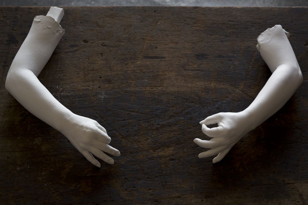 These castings of the artist’s arms present her two hands facing each other, with the thumb and the forefinger touching to enclose a void. The pose is reminiscent of sewing, but without a needle or thread. It speaks of connection on the basis of the artist’s principle of “non-making” and “non-doing.” The void created in the gesture of the hands encompasses an ephemeral moment, where the physical presence also embodies an uncanny absence. The hand gesture also associates with meditation in Buddhist tradition, representing a state of openness to knowledge (jnana mudra) and a connection between the individual and the universal.