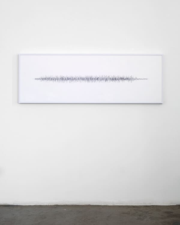One Breath is the first digital embroidery piece Kimsooja made since she stopped her sewing practice in 1992. One segment of sound wave from her breathing performance The Weaving Factory is sewn across the canvas, tracing the cyclical act of inhaling and exhaling across life and death.