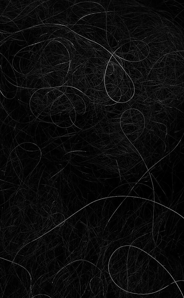 수년간 작가는 자신의 몸에서 빠져나온 머리카락을 수집해왔다. 거의 보이지 않을 정도로 미세한 이 머리카락들은 공간 속에서 실오라기처럼 존재하며, 무한히 겹쳐진 선묘와 같은 형상을 하고 있다. 하나의 머리카락은 탄생과 함께 시작된 시간의 길이를 품고 있으며, 우리 모두가 속한 연속성의 구조를 반영한다. 그것은 몸의 형태를 만들고, 서로의 존재를 이어주는 시간의 기하학을 형상화한다.