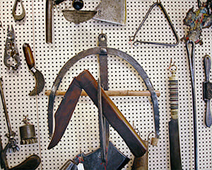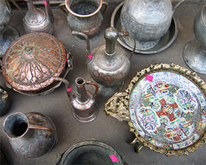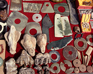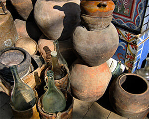 Antique Wooden Cart, 9 Ceramic Balls, 1 Clay Ball