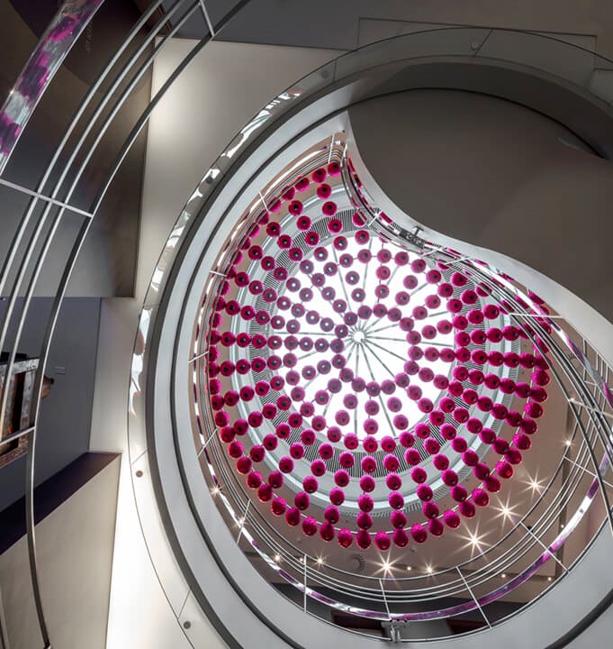 2003/2019, Site-specific Installation Consisting of 272 Lotus Lanterns, Tibetan, Gregorian, and Islamic Chants, Steel Structure and Cables