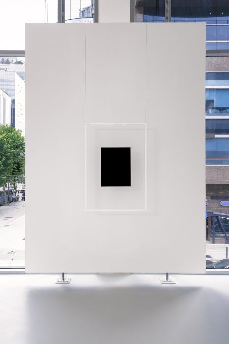 8 Kimsooja, Meta-Painting, 2024, Black paint on glass, 116.7 x 80.3 cm
